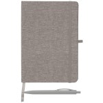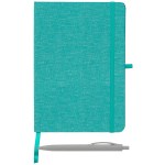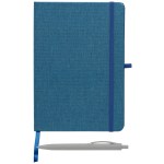 Our Melville RPET Notebook & Zen Pen Gift Set is a great promotional gift for earth-conscious brands. It features a stylish 5.8″ x 8.3″ notebook, with a cover made from RPET recycled plastic, and Zen Pen made from wheat plastic. The notebook features a color-matched elastic strap closure, ribbon bookmark, and pen loop. 80 sheets of lined paper with an ivory flyleaf will keep this set in use and your small business in mind. Show your brand’s true colors with ColorJet, our full-color inkjet imprint process, on both notebook and pen. Complies with Prop 65. 8.27″ H x 5.83″ W x 0.52″ D