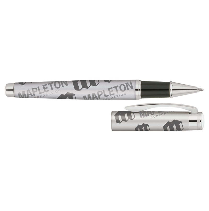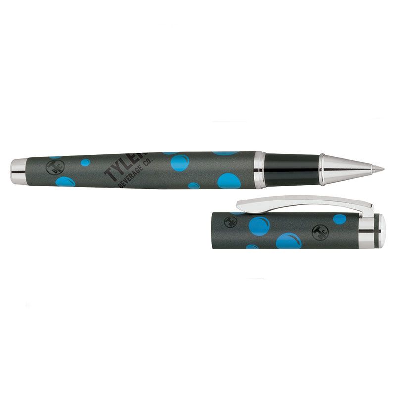 Full wrap printed cap & barrel design, solid brass construction, shiny chrome trims, and black ink. Complies with Prop 65. 11/16″ W x 5 3/8″ H x 1/2″ D