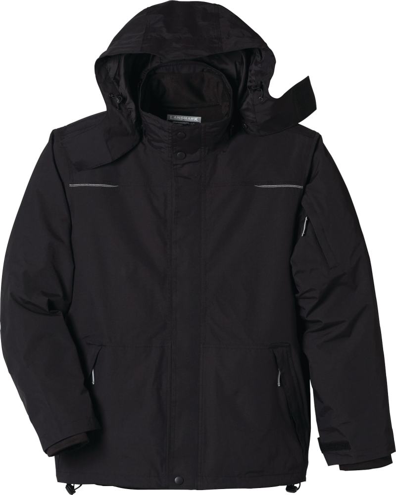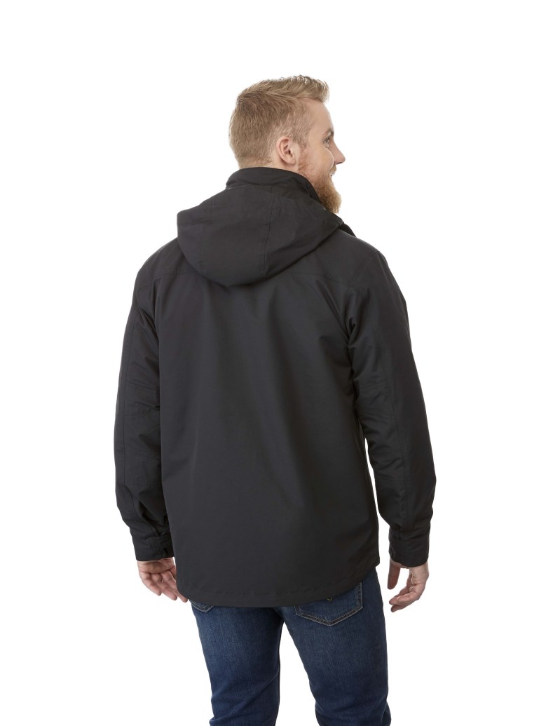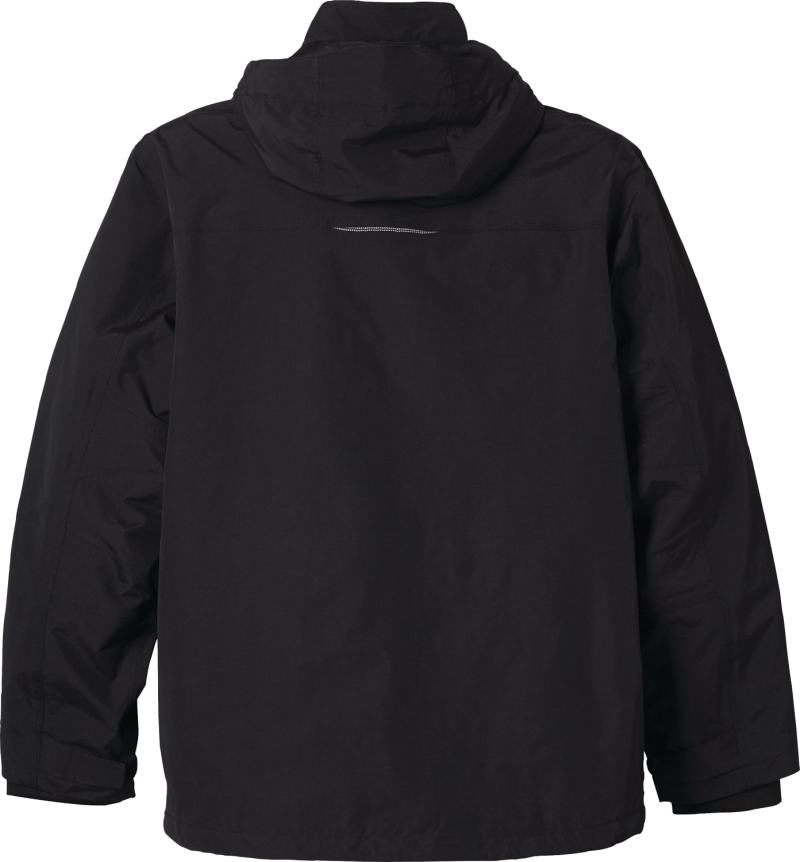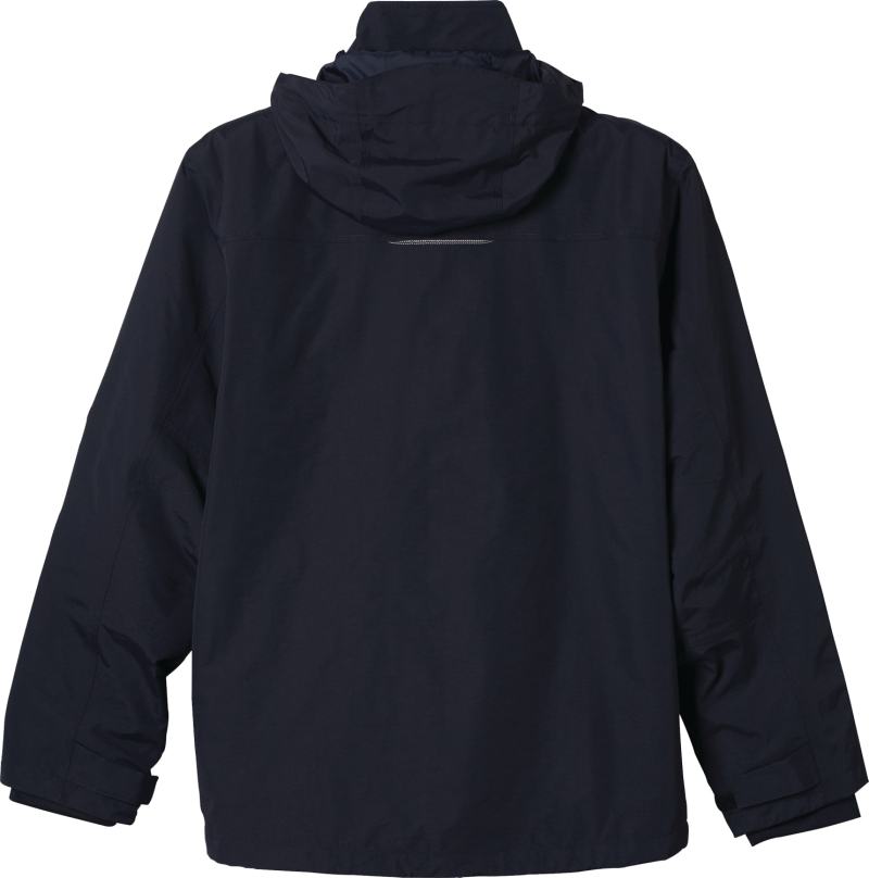 The Dutra 3-in-1 Jacket, available in men’s sizes, will keep you ready for any weather! This fully seam-sealed multi-functional jacket is water repellent and breathable. It features a detachable snap-off hood with drawcord and interior cord locks. Fine detailing includes diminishing two-tone reflective piping and triple needle topstitching. The sleeves are engineered with adjustable self fabric cuff tabs with hook-and-loop closure and articulated elbows. With interior system snap tabs for a liner add in. The accompanying liner with coverstitch detail features an exposed plastic zipper with oxidized dark slider and puller. The jacket features lower patch pockets and an interior pocket with hook-and-loop closure and system loops at the neck and lower sleeves. 8.83″ D x 6.51″ W x 0.50″ H