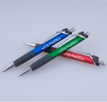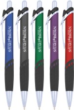 The Merge Softex Gel-Glide Pen features chrome accents, Gel-Glide ink, and a comfort rubber grip. It come with black ink only and imprint colors available are black, silver, or white. Customize with your screen printed logo/art and information. Complies with Prop 65.