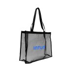 This Large Mesh Shopping Tote Bag is crafted from a blend of nylon and polyamide for durability and breathability. Featuring strong black polypropylene webbing trim and handles, it combines a lightweight 100gsm construction with stylish contrast detailing. Spacious and versatile, it’s ideal for shopping, beach trips, or everyday errands, offering both function and modern appeal. 17 1/2″ L x 13 3/4″ W x 5 1/2″ H