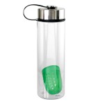 Introducing our premium 24 oz. refillable water bottle designed with a unique floating infuser for an enhanced hydration experience. This sleek bottle can hold 20-22 oz. of liquid when filled with your favorite fruits, allowing you to enjoy delicious infused water on the go. The bottle comes complete with a durable metal lid attached to a convenient lanyard for easy carrying. Crafted from BPA-free materials, this bottle ensures a safe and eco-friendly hydration solution. Please note, this high-quality bottle is not recommended for use in the dishwasher or microwave. Elevate your hydration game with our refillable water bottle with floating infuser today! Complies with FDA, Prop 65. 2.75″ D x 9.75″ H