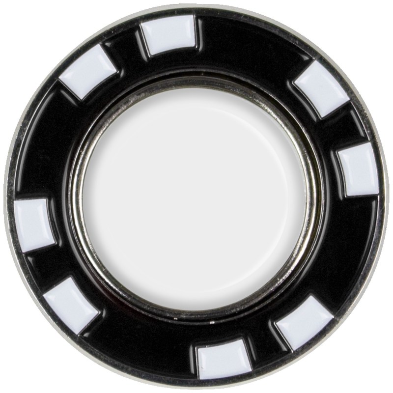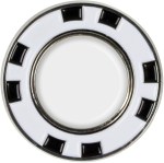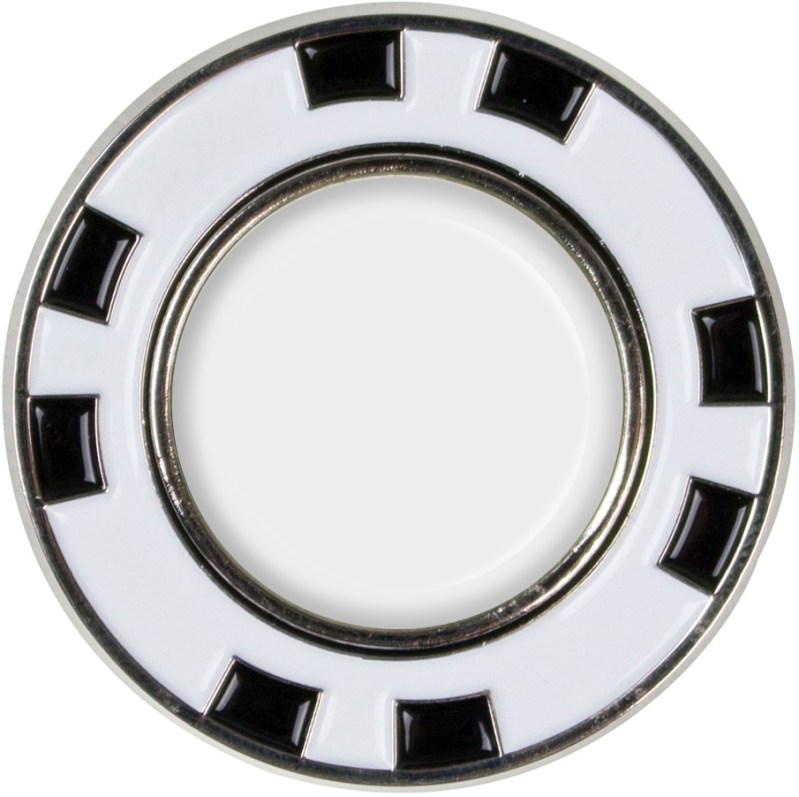 NOTE: Factory will be closed 12/23-1/1. Please Note: If your artwork has a white background, the color of the actual artwork may give the appearance of tinting the color of the white due to light reflection. Example: White with red art may make the white appear to be pink. Solid metal poker chip with two-sided imprint and removable magnetic ball marker. Back side features fixed domed label for added exposure or co-op partnering. Complies with Prop 65. 1 1/2″ Diameter