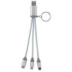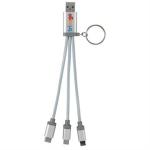 Introducing the sleek Metallic 3-in-1 charging cable with a convenient keyring attachment, and a versatile Multiple USB adaptor. This innovative cable is designed to be compatible with a wide range of devices, including IOS devices, Micro USB, and Type C USB. Its patented technology ensures fast and efficient charging, making it the perfect solution for all your charging needs. Stay connected and powered up on the go with this stylish and practical charging cable. Complies with CE, Prop 65. 6″ L x 0.625″ H