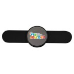 Elevate your phone with our premium silicone phone stand featuring a sleek metallic center. This innovative stand comes equipped with adhesive to securely attach your phone, while the snap-up design effortlessly supports your device at the perfect viewing angle. When not in use, simply fold the stand flat for easy storage and portability. Experience the convenience and style of our silicone phone stand today. Complies with Prop 65. 3.875″ L x 1.125″ H