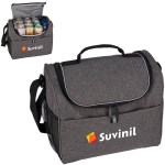 Features front slash pocket with reflective tab, 1 mesh side pocket and 2-zippered opening 300D Polyester, 600D Polyester, 5mm Foam with PEVA lining 30 can capacity Adjustable shoulder strap, plus top handle. 9.5″ D x 13″ W x 11″ H