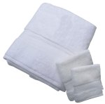 Wrap up your marketing plan with this Full Bath Towel Set to have new and potential customers coming clean about how much they need your services! This beautiful set includes a 30″ x 56″ bath towel, 16″ x 28″ hand towel and 13″ x 13″ washcloth. The white towels are made of 100% Miasma cotton terry. Add your company’s name, logo and advertising message to create a comfortable and useful marketing tool. Create a simple gift presentation by adding a satin ribbon. Contact us for more information. Complies with Prop 65. 30″ L x 56″ W