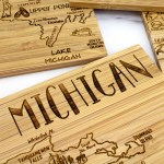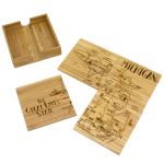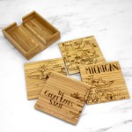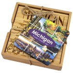 This State Puzzle Coaster Set with Case offers a natural solution for protecting tabletop. These sturdy coasters are crafted from organically-grown Moso® bamboo, an environmentally-friendly material solution that quickly re-grows once harvested. Bamboo is both lightweight & durable a perfect choice for coasters! The coaster set includes a handsome case to store coasters neatly when not in use. The coasters are easy to care for as well: simply wipe them with a damp cloth to clean. Complies with Prop 65. 4″ W x 4″ H