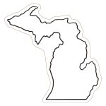 Magnet shaped like the state of Michigan. Motto: Si quaeris peninsulam amoenam, circumspice. Nickname: Great Lakes State. 3.34375″ W x 3.40625″ H x 0.01″ D