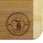 Crafted from renewable bamboo, this 2-tone Bamboo Cutting Board is a must-have in any kitchen. Use it to cut herbs, vegetables, fruits, and more. Quality & affordability come with the State Stamp Cutting Board. Complies with Prop 65. 11″ L x 8 3/4″ W x 1/2″ Thick