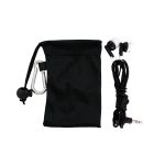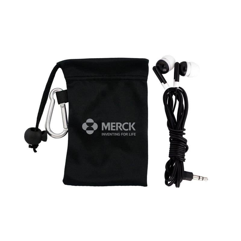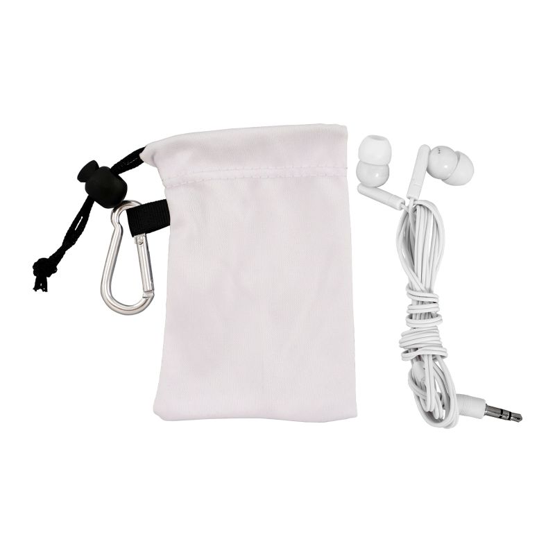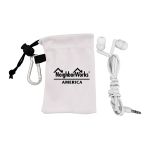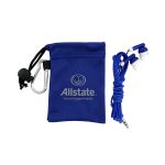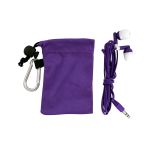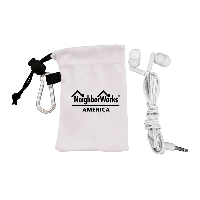Colorful travel ear buds in microfiber pouch. White and Gray imprint colors not available. Complies with Prop 65. 2.25″ L x 3.75″ H