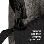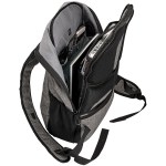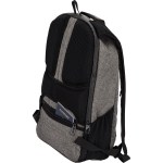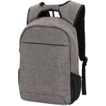 Constructed of 300D Polyester and water-resistant material Luggage strap padded for added backpack comfort and easily slips over luggage handle Padded inside slash pockets hold a 15 laptop and a Neoprene tablet pocket Hidden back zippered pocket for extra security One security hook zipper head with water resistant zippers Main compartment opens at the back and features a large RFID pocket, simple organizer and two mesh pockets Features include 2 side mesh pockets, padded adjustable shoulder. 5.5″ D x 14″ W x 20″ H