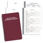 Military Log, Military Record, Family Record, Real Estate Record, Financial Log, 18 Categories, Retiree Data, Wire Bound, Rectangle, Square Corner, Leatherette Cover. 5 1/2″ W x 8 1/2″ H