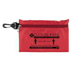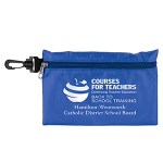Perfect for travel or for carrying chargers, earphones, makeup, coins, keys, credit cards and cash. Contents not included. 420D Polyester for Royal Blue, Red, Black & Lime Green pouch. Clear Vinyl for clear pouch. Complies with CPSIA, Prop 65. 7 1/2″ W x 5″ H