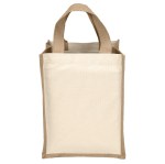 The Mimi™ Natural Tote combines durable 10-oz. cotton front and back panels with stylish natural-colored jute gussets and bottom. Interior gussets are laminated for added durability. Handles measure 1 1/4″W x 15″ long. *Due to the natural character of cotton fabric, slight color variances will occur between bags. 10″ W x 8″ D x 13″ H