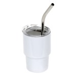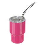 The Mini Belmont 3 oz Double-Wall Stainless Steel Tumbler with Straw! With a 3oz capacity, it’s easy to carry and perfect for travel. Crafted from stainless steel with double-wall construction. Its tapered bottom mirrors our popular Belmont Tumbler. Includes a clear plastic push-on lid and metal curved straw. Ideal for tastings, parties, and gifts. Hand wash only. BPA Free & FDA certified. Complies with FDA, Prop 65. 3″ H x 2″ Diameter