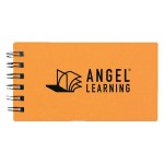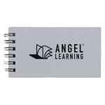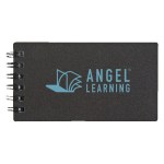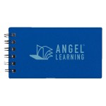 Pocket-sized spiral-bound jotter with clear business card pocket, bold translucent-color cover, and 40 lined sheets. 2.375″ H x 4.625″ W