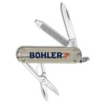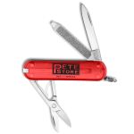 Two great brand names packaged together in a sleek presentation box. The 5.75″ M2A Mini Maglite comes with 2 “AA” batteries, shines brighter than flashlights of equal battery resources, and is available in black, blue, red, or gray. Victorinox’s most popular pocket knife the Classic has a 2 1/4″ Handle, is available in a multitude of colors and features a blade, scissors, nail file with screwdriver tip, key ring, tweezers, and toothpick. Laser engraved on Mini-Maglite. Pad print or full color print on knife. . Complies with Prop 65. 2 1/4″ L