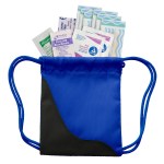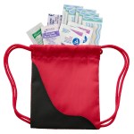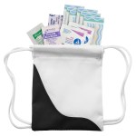 This item features a mini version of the popular sling bags filled with useful first aid items. Contents include 6 latex-free bandages, 2″x3″ adhesive pad, first aid cream packet, 2 antiseptic towelettes and hand sanitizer packet. A great way to advertise to the active end user. 4 3/4″ W x 4″ H x 1/2″ D