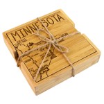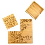 This State Puzzle Coaster Set with Case offers a natural solution for protecting tabletop. These sturdy coasters are crafted from organically-grown Moso® bamboo, an environmentally-friendly material solution that quickly re-grows once harvested. Bamboo is both lightweight & durable a perfect choice for coasters! The coaster set includes a handsome case to store coasters neatly when not in use. The coasters are easy to care for as well: simply wipe them with a damp cloth to clean. Complies with Prop 65. 4″ W x 4″ H