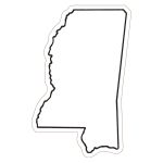 Magnet shaped like the state of Mississippi. Motto: Virtute et armis. Nickname: The Magnolia State. 2.375″ W x 3.625″ H x 0.01″ D