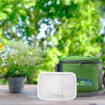 Introducing our sleek and eco-friendly Modern RPET Lunch Cooler, crafted from recycled polyester for the environmentally conscious consumer. This innovative Lunch To Go Container features a convenient clip top, ensuring your meals stay fresh and secure while on the go. Reduce waste and make a positive impact on the planet with this stylish and practical lunch set. Complies with FDA, Prop 65. 8″ L x 7.5″ H x 6″ W