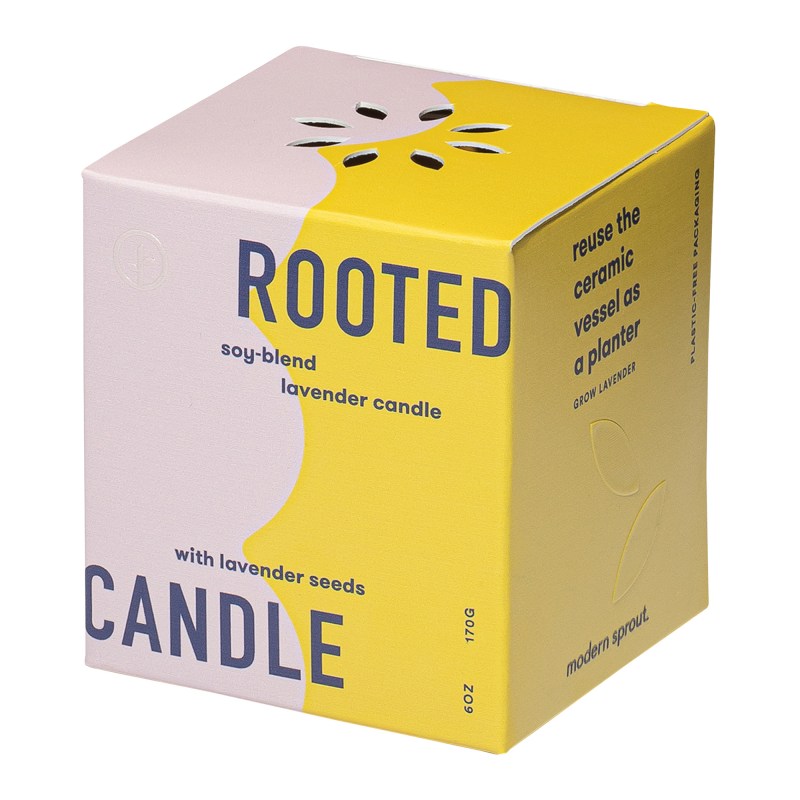 A 6oz soy-blend scented candle is outfitted in a matte glazed ceramic vessel and includes an organic seed packet to grow plant once the candle has been burned down. Candle and seed packet are packaged inside a beautifully designed box for easy gifting. Plastic-free packaging. 42 hour burn time. Gift box dimensions: 3.5”L x 3.5”W x 3.75”H. Complies with CPSIA, Prop 65. 3.25″ W x 3.5″ H x 3.25″ L