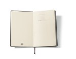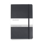 Your customers will take note of your brand when you hand out this promotional notebook from Moleskine. Great for use at home, office or on the road, this reliable travel companion is perfect for notes, sketches and thoughts. It features a flexible, black soft cover with rounded corners, bookmark and elastic strap closure. Write everything down on 192 pages (96 sheets) of ruled format, Certified FSC, acid-free paper. Complies with CPSIA, Prop 65. 0.5″ W x 8.25″ H x 5″ L