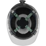 Felt-lined foam sweatband Made in Canada Shell has a rain trough for extra convenience in inclement weather conditions Lightweight shell made with High Density Polyethylene (HDPE) Fulfills Class E Electrical Insulation requirements 4-point Nylon webbing suspension with SURE LOCK wheel ratchet adjustment for a secure and comfortable fit Universal accessory slots accommodate a variety of eye, face and hearing protection products EPS Liner for enhanced side, front and rear impact protection. 11.5″ D x 9″ W x 6″ H