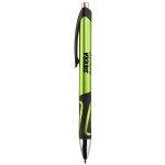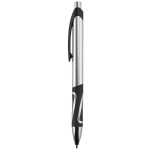Sleek Retractable ballpoint pen with metallic colored barrel. Includes black plastic clip with black rubber grip. Features chrome ferrule and plunger. Black medium point with High-quality Glide-Write™ ink. 5 1/2″ L x 3/8″ Diameter