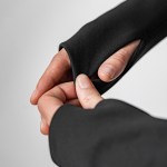 Bi Stretch Thermal Fleece Knit. Asymmetrical Snag-Resistant Zipper. Thumb Hole Sleeves. Complies with Prop 65.