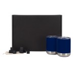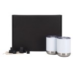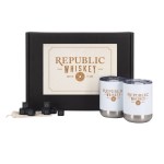 The Mt Bradley on the Rocks Gift Set offers a premium drinking experience. It includes two 15 oz Basecamp stainless steel double-wall vacuum tumblers with slider lids, perfect for keeping drinks at the ideal temperature. Nine laser-etched whiskey stones come in a muslin bag, ready to chill your drink without dilution. The set is packaged in a custom gift box with crinkle paper, featuring a roll-end tuck front and an imprinted spectrum label for a stylish and easy-to-open presentation.