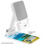 Experience the ultimate convenience with this durable desktop stand, designed to hold smartphones of any size. Its compact foldable design makes it effortless to transport. Enjoy the adjustable height and angle for the perfect viewing experience. Simply flip the silicone pad over to conveniently use an iOS MagSafe® charger (charger not included). Assembly is required, but it’s a small price to pay for such a versatile accessory. Personalize it with a one-color, one-location imprint or a one-position digital imprint. Complies with CCPSA, CPSIA, Prop 65. 4 3/8″ L x 2 5/8″ W x 1 1/4″ Thick