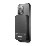 This ultra-slim 10,000mAh power bank delivers up to 15W wireless and 20W wired charging with strong MagSafe-compatible magnetic hold. Fully charges an iPhone 15 Pro twice. Wrapped in recycled animal-free leather for a sleek, durable finish. Features pass-through charging, safety protections, and a two-way USB-C port. Includes USB-C to USB-C braided cable. Compatible with MagSafe, Qi2, and AirPods Pro. Complies with CPSIA, Prop 65. 4.02″ W x 0.65″ H x 2.76″ L
