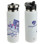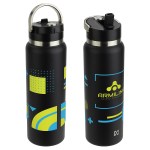 NAYAD® Ranger 40 oz Stainless Double-wall Bottle with Flip-Top Spout is made of 18/304 rust-free stanless steel construction with a powder coated matte finish and features a wide-mouth lid is 100% BPA-free ABS plastic with flip-top spout. Copper-lined to keep beverage hot up to 10 hours and cold for 20 hours. Carrying handle on lid is made of zinc alloy for strength and durability. ABS plastic straw is removable for easy cleaning. Hand wash only. FDA certified. Complies with FDA, Prop 65. 11.25″ H x 3.625″ Diameter