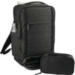 Whether you’re back in the office, working from home, or working from a different city every week, the NBN Work Anywhere 15” Computer Backpack is up to the task. This backpack features a dedicated padded 15” laptop compartment. The zippered main compartment includes a slash pocket on the back wall that’s perfect for tablets. It also features a zippered mesh pocket and an organizational panel on the inside of the front panel. The separate, zippered bottom compartment includes a removable organization pouch to keep smaller belongings in one place. The padded back straps and back panel, trolley sleeve, and top-grab handle make it easy to grab and go. 5.00″ D x 12.00″ W x 18.00″ H
