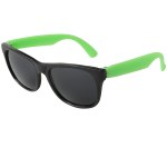 Fun-in-the-sun style features brightly colored neon or black temples and dark, ultraviolet-protective lenses. 2″ H x 5 3/4″ W