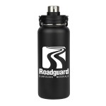 Whether on a long commute or during a high-intensity workout, stay hydrated with the 34 oz. Neptune Water Bottle. Made with double wall stainless steel and the vacuum insulated construction, this bottle keeps cold drinks cold for 30 hours and hot drinks hot for 18 hours. Its dual-function, screw-top lid features a threaded chug spout with tethered lid for pouring and drinking and a large opening ideal for adding ice and cleaning, and an integrated loop handle makes the bottle easy to carry with you. The bottle has a durable scratch-resistant powder coat finish and is FDA compliant and BPA Free. Complies with Prop 65. 4″ W x 10 1/8″ H x 3 5/8″ D