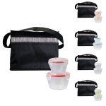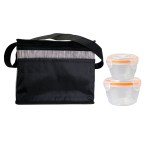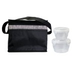 Introducing the sleek and stylish Black Graph Cooler Bag, featuring a convenient full top opening for easy access. Accompanied by the innovative Nesting Locking Lid Bowl Set, complete with vented lids for optimal freshness and convenience. Complies with FDA, Prop 65. 8″ L x 7″ H x 6″ W