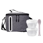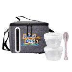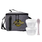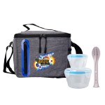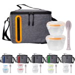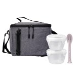 Introducing the stylish Oval Line Lunch Cooler complete with vibrant accents. Pair it with our Nesting Locking Lid Bowl Set featuring vented lids for ultimate freshness. The set also includes a sleek cutlery set with a fork, knife, and spoon. Elevate your lunchtime experience with these essential accessories. Complies with FDA, Prop 65. 9″ L x 6.5″ W x 7.5″ H