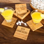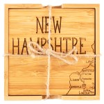 This State Puzzle Coaster Set with Case offers a natural solution for protecting tabletop. These sturdy coasters are crafted from organically-grown Moso® bamboo, an environmentally-friendly material solution that quickly re-grows once harvested. Bamboo is both lightweight & durable a perfect choice for coasters! The coaster set includes a handsome case to store coasters neatly when not in use. The coasters are easy to care for as well: simply wipe them with a damp cloth to clean. Complies with Prop 65. 4″ W x 4″ H