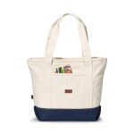 Enhance clients’ beach day with this fun giveaway! This Newport Cotton Zippered Tote provides a terrific backdrop for your logo. Made of 14 oz. unbleached cotton and measuring 26.5″ diameter; this classic tote has a contrast color bottom and a large main compartment with zippered closure; zipper tape matches bottom color. Additionally, it has a front slash pocket and 26.5 shoulder straps. What a great choice for resorts! Complies with CPSIA, Prop 65. 7″ W x 15″ H x 21″ L