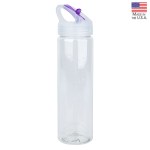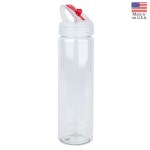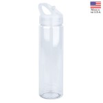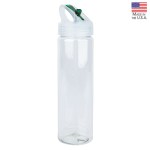 The U.S.A.-Made Newport II is a 25 oz. clear water bottle made from PET. It features a lid with an integrated carry handle and flip spout for drinking. The Newport bottle is FDA compliant and BPA free. Absolute minimum is 2,500 pieces for HS option (high speed). Complies with Prop 65. 2 3/4″ W x 10 1/4″ H x 2 3/4″ D