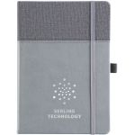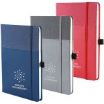 The Newport Journal is an Affordable Addition for any Office! Features a soft faux leather cover with an inlaid fabric cover design. Each Newport journal has 80 sheets (160 ruled pages). Also built into the journal is a ribbon page marker and a pocket inside the back cover to store documents. Add your foil imprinted message on each journal for the finishing touch. Complies with Prop 65. 5.75″ W x 8.75″ H