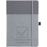 The Newport Journal is an Affordable Addition for any Office! Features a soft faux leather cover with an inlaid fabric cover design. Each Newport journal has 80 sheets (160 ruled pages). Also built into the journal is a ribbon page marker and a pocket inside the back cover to store documents. Add your debossed imprint on each journal for the finishing touch. Complies with Prop 65.
