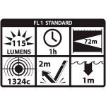 IP-X7 Waterproof 1-Year Limited Warranty Non-slip grip Textured tail cap switch with momentary or constant-on modes Output: 115 lumens Certifications: CE Rotating bezel ring Aircraft-grade 6061-T6 Aluminum housing, bezel and tail-cap with Type III hard anodized finish Includes 1x AA battery and 1000D Water Repellent bag Packaged in a 1000D Water Repellent bag (9.75″H x 4.5″W) Impact & chemical resistant Bulb Type: CREE LED. 4.25″ D x 1″ W x 1″ H