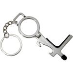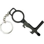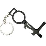 Introducing the ultimate multi-functional tool for on-the-go protection: the No Contact Keychain. This innovative device features a stylus for use on checkout pads, keypads, and elevator buttons, helping you avoid contact with germs and bacteria. Additionally, the keychain is equipped with a convenient door opener, perfect for pushing or pulling doors open without touching them. The built-in grocery bag hook adds another layer of convenience, while the pull ring can be easily converted into a phone holder. Stay safe and germ-free with the No Contact Keychain. Complies with Prop 65. 3.75″ L x 1.625″ H