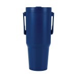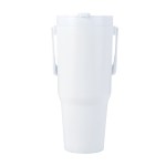 Stay hydrated on the go with the Noah 32 oz Travel Mug. Designed for convenience, durability, and everyday use, this mug is made from durable polypropylene and its double wall construction with foam insulation helps keep drinks cool. The spill-resistant flip top lid features a sipper spout for smooth drinking, and the swing carry handle offers grab-and-go portability. A press-on main lid snaps in to place and pulls open to allow quick access for cleaning or adding ice. Designed to fit most car cup holders, this mug is perfect for commutes, road trips, or daily errands. FDA Compliant and BPA-Free. Complies with Prop 65. 4 5/8″ W x 9 5/16″ H x 4 1/4″ D