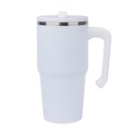 Enjoy your beverages on the go with the Nolan 20 oz. Travel Mug, designed for both performance and convenience. Its double-wall, vacuum-insulated construction with an 18/8 stainless steel inner wall keeps drinks hot for up to 8 hours or cold for up to 12 hours. The screw-top lid features an integrated flip-up straw for easy sipping, while the ergonomic handle ensures comfortable carrying. Slim and travel-friendly, it fits most car cup holders, making it the perfect companion for commutes, workouts, or outdoor adventures. FDA Compliant & BPA Free. Complies with Prop 65. 5 1/16″ W x 7 1/2″ H x 3 1/2″ D