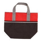 80 gsm non-woven polypropylene with three-tone design insulated cooler tote bag. Features zippered top closure, black front pocket, insulation is 2 mm PE foam with aluminum foil and 10″ carrying handle. 9 5/8″ H x 12″ W x 5″ D